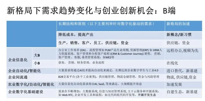 所有这四个趋势都在被加速,全球因此形成了一个新的格局。那么我们如何来分析这个新格局,并从中看到创业机会呢?