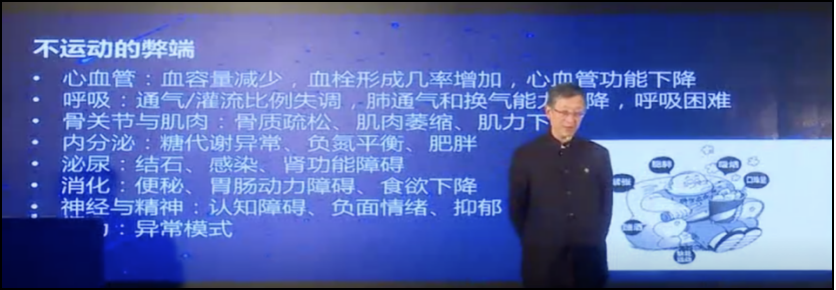 励建安表示,卧床会导致心肺功能衰退、血容量减少、有氧运动能力降低、深静脉血栓形成风险增加、肌肉萎缩、关节活动障碍、骨质疏松、肾上腺皮质激素分泌增加,糖代谢和脂质代谢紊乱、泌尿系统结石、免疫能力低下和感染率增加……