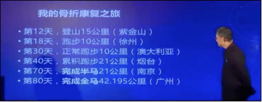 近年来,他不断用自身经历,打破“伤筋动骨一百天”、“跑步损耗关节”等传统的运动“禁忌”。