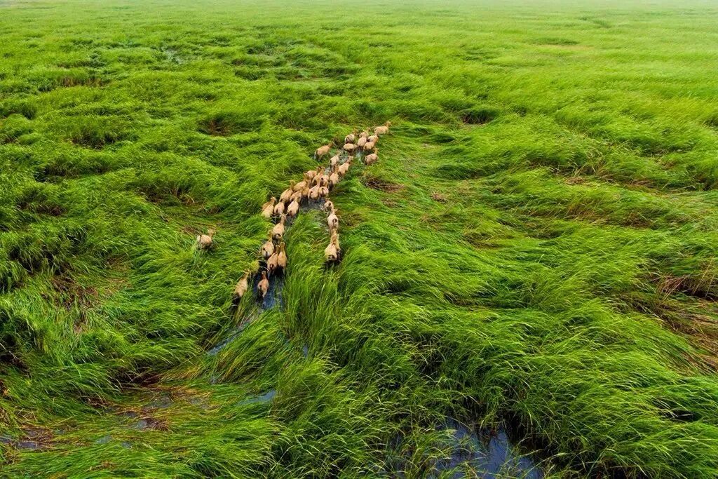 “大家小心,”伊万医生高声叫道,“大沼泽中水占85~95%,余下的干物质为泥炭,万一不慎脚陷进去了,千万不要挣扎。根据物理学的定律,胡乱挣扎只会使得沼泽的密度下降,导致你越陷越深。但凡遇到这种情况,其他人可以伸出自动步枪将其拖上来,切记不可直接用手拉,那样会一同陷进去的。”