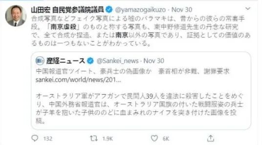 日本《产经新闻》近日在推特上,发表文章公开质疑南京大屠杀的真实性,推特没管这件事,日本自民党参议院山田宏,转发《产经新闻》的内容,表示市面上的那些有关“南京虐杀”的照片,都是合成的,捏造的,推特也没管这件事情。推特公司把中文用户发表的内容删除,却把日本用户的内容不管不问,这样狼狈为奸的行为,无疑让每个中国人感到愤怒。这个时候,怎么就没有人站出来,说日本破坏了日中友好,啊哈,是因为脸早已经被打肿了吗。内心害怕看到中国宣传国家公祭的人,他们要么是美日这种境外敌对势力,要么就是“安插”在境内的内鬼。不管日本是否道歉,我们都没有资格向那些死去的同胞说出原谅,说是会破坏中日关系,建议早点滚出中国。