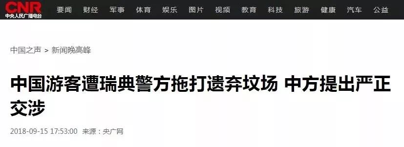 瑞典这个中国游客事件后,中国政府立刻向瑞典官方交涉。