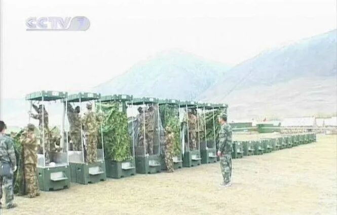 移动营房比普通集装箱活动板房更结实、耐用,其外层覆盖的伪装网由高科技材料制成,具有隐身特性,适宜野战环境。