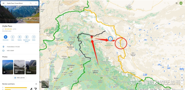 比如下图中的蓝圈便是印军大后方的列城,列城再往前不远就是楚舒勒,楚舒勒就在班公湖旁。