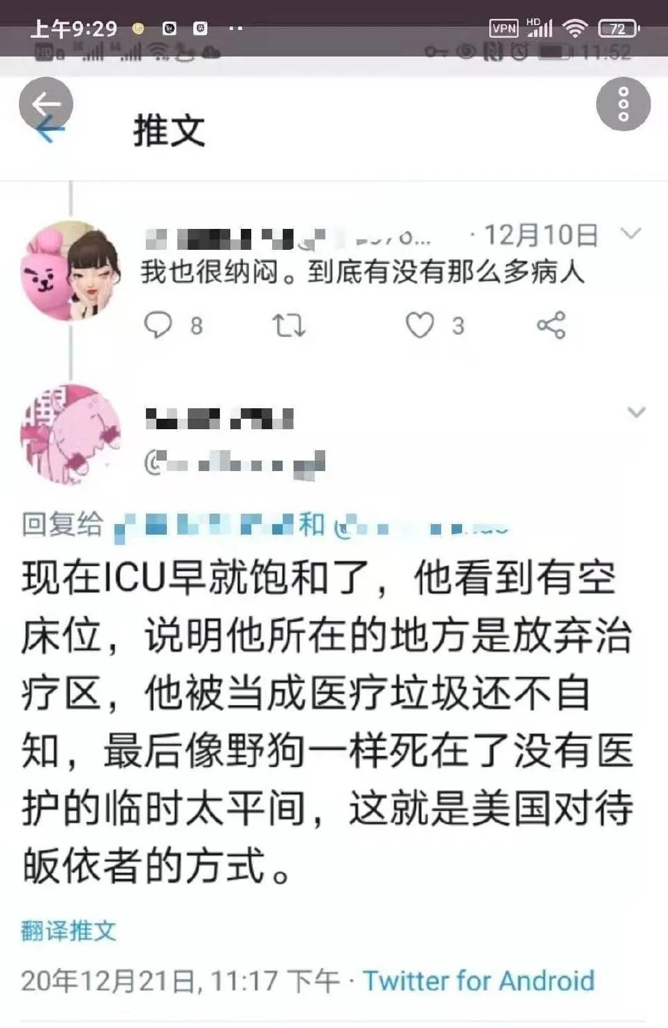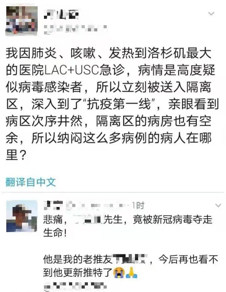 然后,这位公知很快被新冠病毒夺走了生命,在他的最后一条推文下面,有人揭示了他看到美国医院有空床位背后残酷的真相。