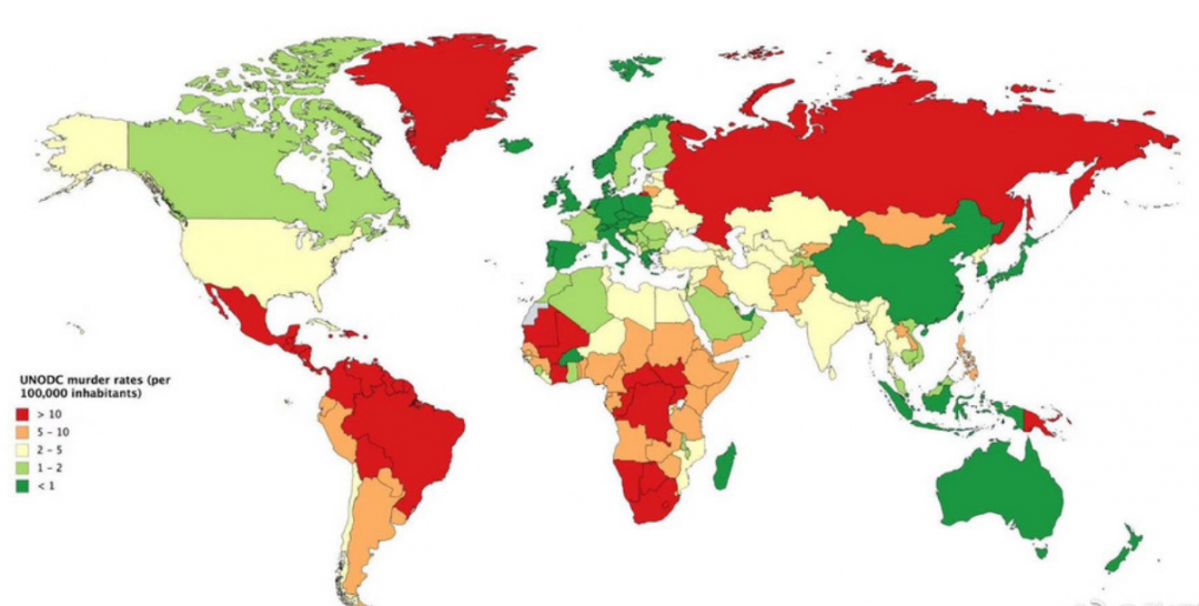 全球凶杀案发案率地图