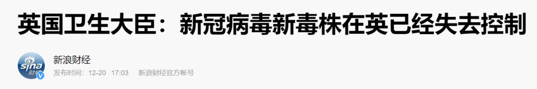 12月18日英国首相约翰逊宣布英国出现新型变异新冠病毒,紧接着英国卫生大臣承认新冠疫情已经失控。19日,英国宣布伦敦封城!