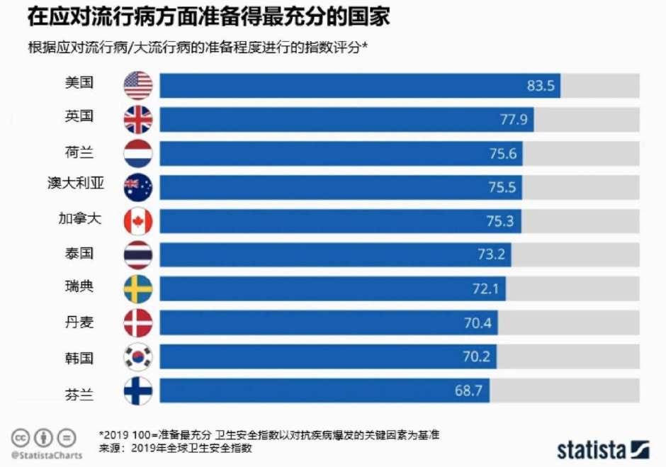 现在我们回头来看这个排名当然觉得很搞笑,但是如果不是今年爆发的新冠疫情,我相信不要说是西方国家精英阶层,就算是很多中国人对美国智库这个排名也是深信不疑。