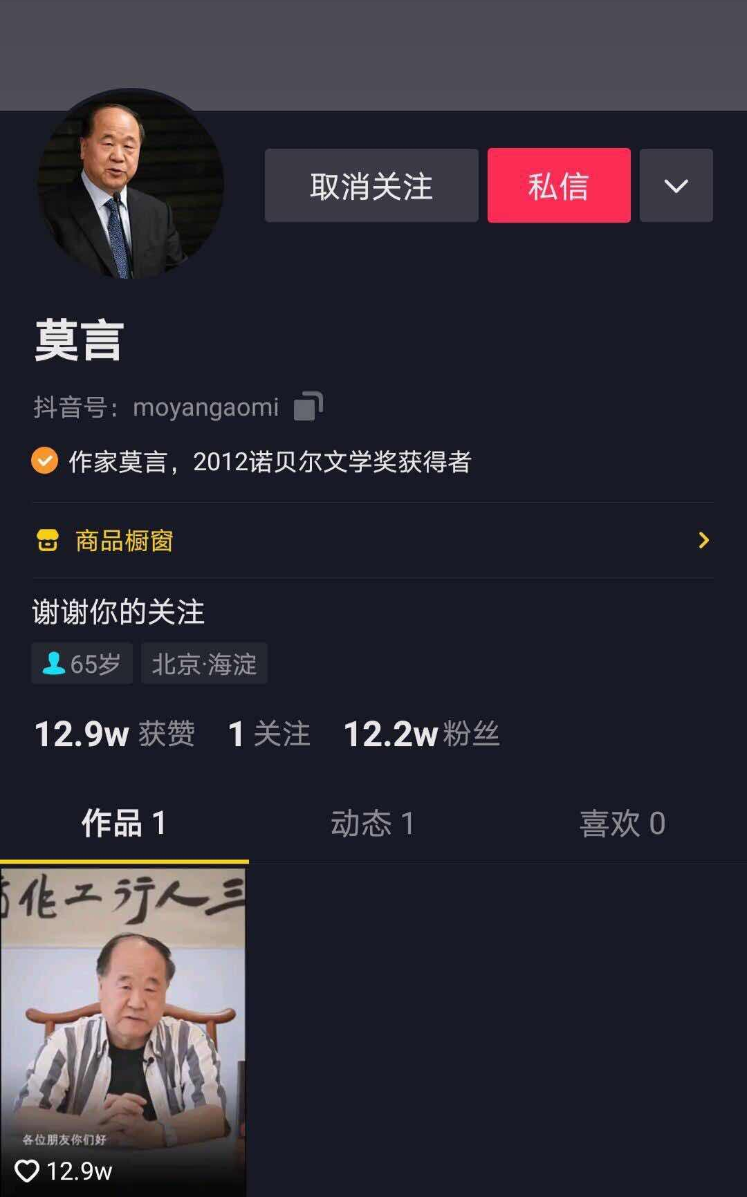 过去的一周文艺关键词有:中国将探索婚前辅导课程;莫言开通抖音账号;许鞍华《第一炉香》发布预告片,选角遭群嘲;奥斯卡修改规则,要求参赛影片必须有女性或少数族裔参与……# 莫言开通抖音,首条视频发布仅1小时获3万点赞 “大家好,我是莫言。今天起我入驻抖音了,请大家多多关注。”9月3日上午,诺贝尔文学奖得主莫言,在抖音平台上传了一条视频,根据平台时间显示,短短4个小时,粉丝已经超过11万,视频点赞超12万。