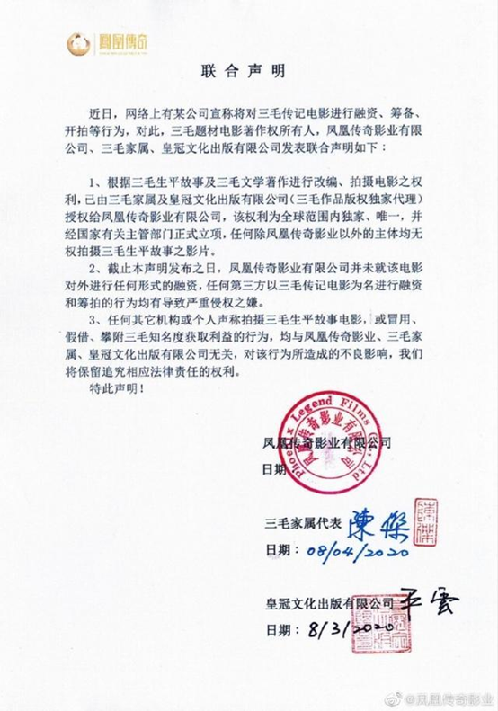 据百度百科显示,《流浪的三毛》是一部由刘晓庆监制、严歌苓编剧的院线电影。8月7日,凤凰传奇影业在微信公号上继续发布声明,称:“凤凰传奇影业联合三毛家人、皇冠出版社,严正声明:凤凰传奇影业与三毛家人从未授权影片《流浪的三毛》进行三毛传记的任何影视化改编工作,网上出现的《流浪的三毛》项目组讯、项目书、新闻均为侵权消息。三毛家人表示从未与刘晓庆方面或尊皇影业的马力先生就拍摄三毛电影一事进行过正式洽谈,更未签约授权。希望他们立即停止关于该影片的工作。”