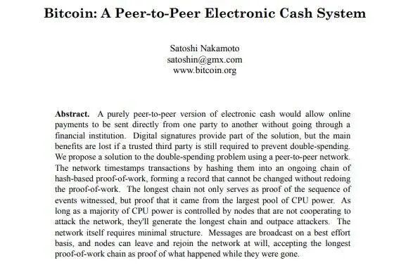 2008年,秋风渐冷,此时金融危机的阴云逐渐扩散到整个世界。那年的11月1日,一个化名中本聪的网络极客对着电脑,给一篇不足5000字的论文做最后的修改。没有人会提前预知,这篇短小的文章竟会掀起长达十几年的腥风血雨。它就是《比特币:一种点对点式的电子现金系统》,也叫做《比特币白皮书》。虽然人们不知道中本聪是谁,但是许多比特币玩家都把《白皮书》看作新时代的《圣经》。