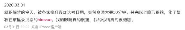 除了上述视频的稳定性等技术挑战外,应聘者对视频面试的“投诉”也并不少见,比如对着冷冰冰的机器使用起来不自然。