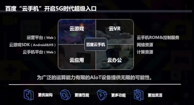 目前百度云手机覆盖了四大应用场景,分别是云游戏、云应用、云VR和云办公。