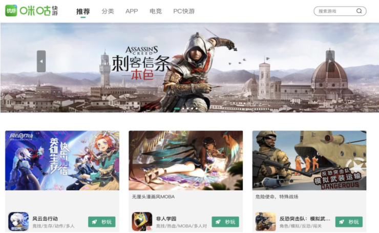 小度音箱也成为双方合作的一部分,小度在家内置咪咕快游的游戏内容,其本身不为游戏场景设立,但是也有运行一些较大应用的需求,云应用就解决了这一问题。小度在家可以呈现云应用加载的数据视频流,通过交互也能够完成与视频流的结合,接近本地运行体验,交互成本低且不依赖高性能硬件。