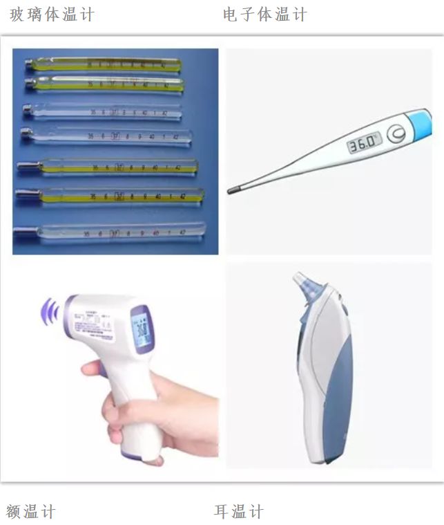 检测人体体温的温度计有接触式和非接触式两种,常用的接触式体温计是玻璃和电子两种,非接触式有红外耳温和红外额温两种。