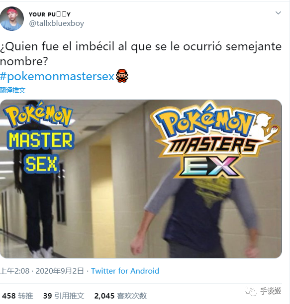 然而,姬友们注意到了吗,这游戏的名字如果不加空格和大小写就当话题tag的话,没玩过的人第一眼很容易看成pokémonmastersex,也就是pokémon master sex!
