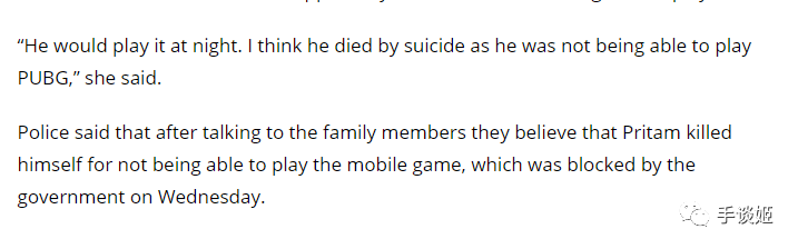 就在数日前的8月31日,印度乌姆里斯·塔卢卡地区的一个16岁男孩,因父亲责备其玩《绝地求生》手游,并没收了他的手机而自杀。