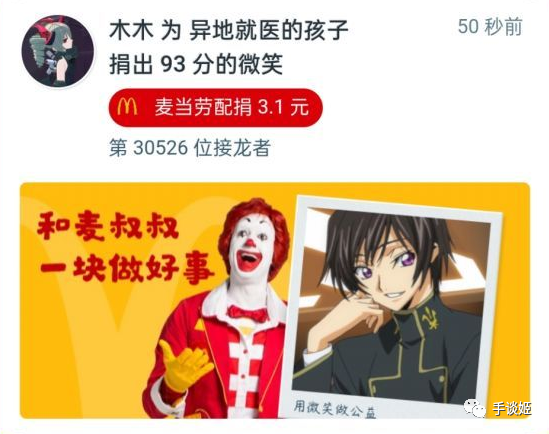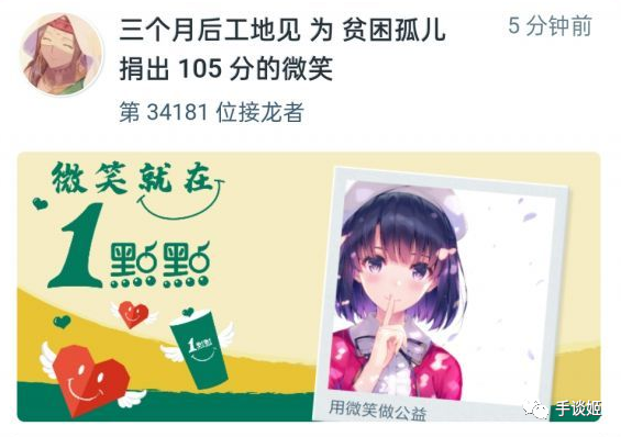 于是渐渐的,参与公益的二次元人群变多了。动漫人物笑脸,也逐渐被圈内梗图替代。