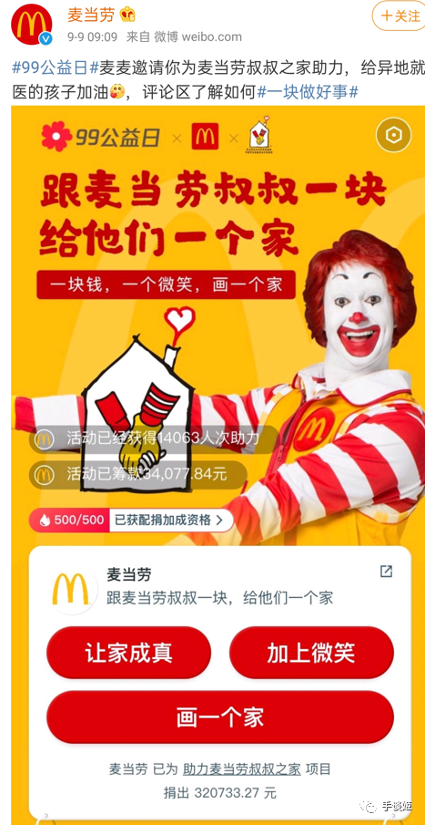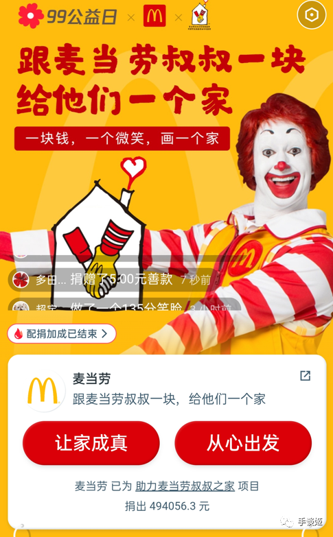 今天是99公益日。我们熟悉的“肥宅快乐餐王者”麦当劳整了个公益活动,帮助异地就医的孩子解决居住问题。