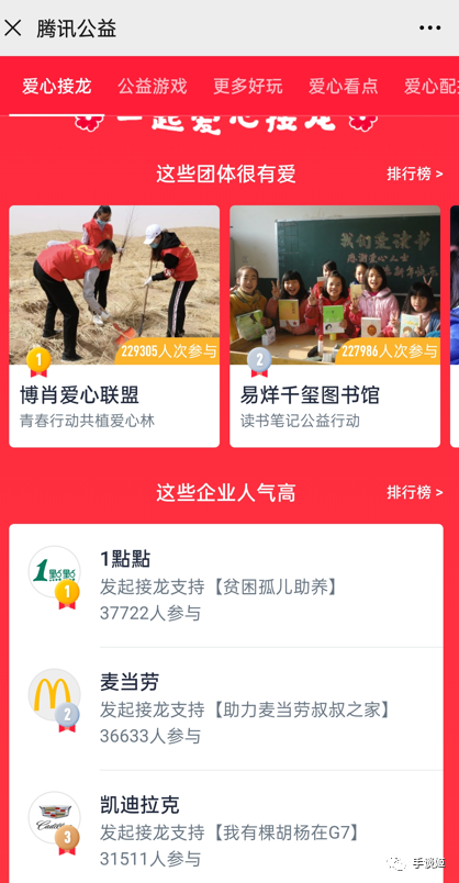而参加的方式也很简单。在微信公众号搜索“腾讯公益”,找到官方小程序,然后在程序内打开爱心接龙这一栏就能看到。