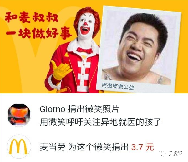 亦或者上传一张笑脸图。系统将为笑脸打分,分数对应一定的捐助金额,由麦当劳提供资金。
