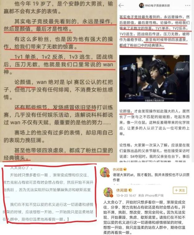 《你微笑时很美》的文章还直接照搬了LPL战队官博和一些博主发的博文,从人设到剧情再到文字,整部作品被称作“缝合怪”都毫不过分。