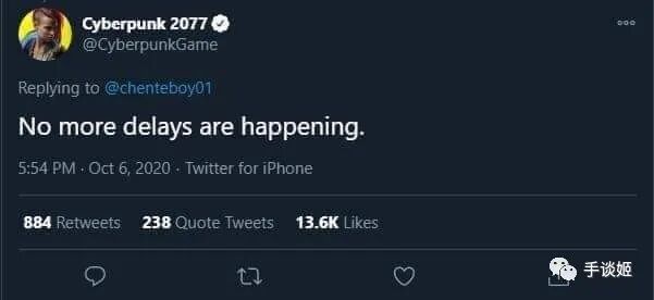 虽然当年《巫师3》也跳票了三次,但是最后也是最糟糕的,在与国内外玩家的互动之中,《赛博朋克2077》官方多次承诺不会延迟发售,还在前段时间宣告游戏开始进厂压盘了。