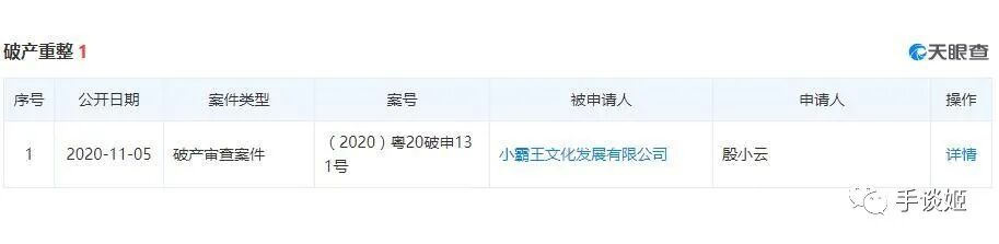 11月5日,小霸王申请破产了。