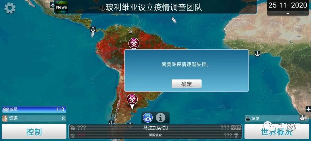 你还需要随时关注顶端滑动的新闻,了解世界各国发生的大事,并尽早组织团队研发疫苗。