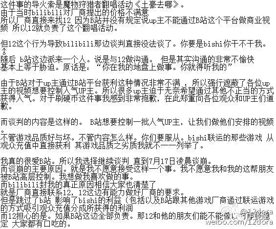 导火索便是,12dora及其团队的UP主,经常会私自接一些商业广告单,接得多了,游戏区热门榜便成了广告的天下,影响了观众体验。而b站没捞到一分钱,自然不满。(现在b站有绿洲计划,UP主们恰的饭b站都要收几成的)