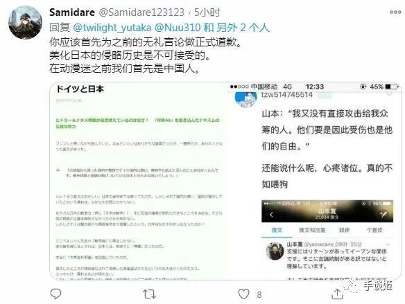 面对中国网友的鄙视,山本宽竟然还敢BB自己对战争的态度。借助着机翻,唠唠叨叨。