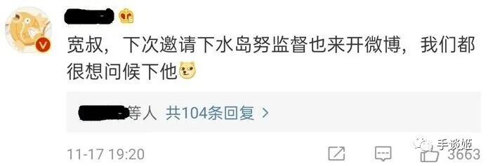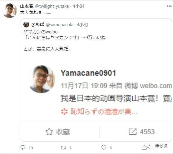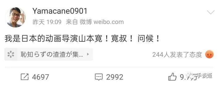 有让其邀请小伙伴一起来挨骂的。(水岛努也是日本动画导演,代表作:《白箱》《少女与战车》《侵略乌贼娘》等,手谈姬本来很欣赏他的作品,然而数月之前,其发表支持香港废青的言论,从此也被中国二次元爱好者拉入黑名单)