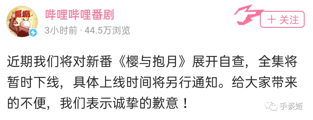 可惜啊,这才播出一个多月,11月27日,代理了《樱与抱月》的b站官方突然告知大家,将对该番剧进行自查,并暂时下线,恢复时间未知。