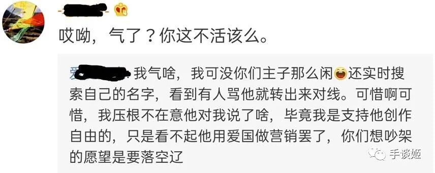 还有的高呼支持创作自由,但看不起乌合麒麟爱国营销,爱国主义是流氓最后的遮羞布。