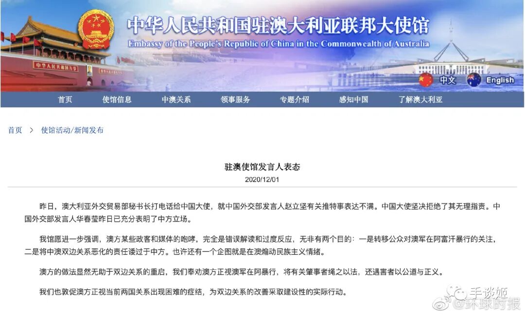 中国驻澳使馆:拒绝鸟你。