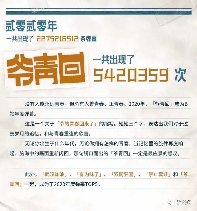 其中,“爷青回”,即爷的青春回来了,总共出现540多万次,成为年度冠军。