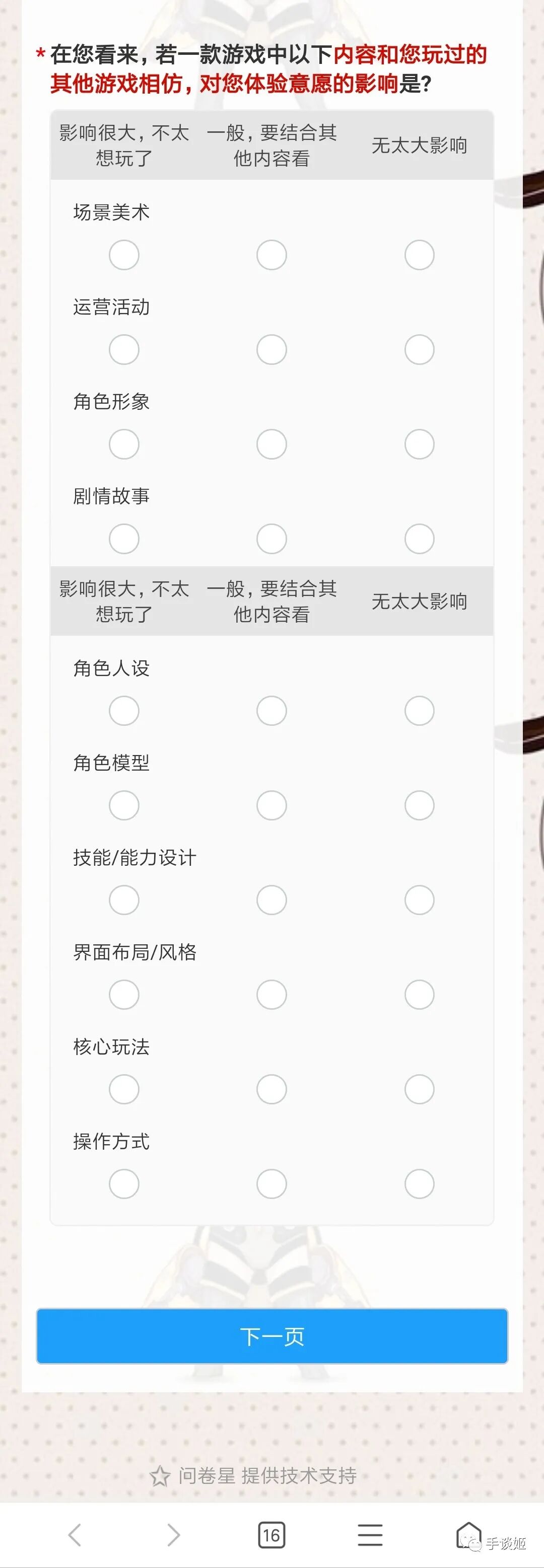 不过这游戏的操作不止于此,《代号:bee》的官方出过一套调查问卷,直接对标了《战双》,几乎是明着告诉玩家自己的游戏要照着《战双》的样子做,问相似度高了的话是否介意。