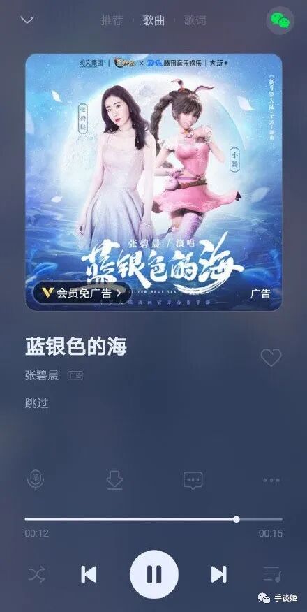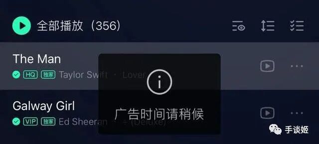 如果有姬友在用有声节目APP听小说或电台的话,对这种形式的广告应该不陌生,但歌曲和有声节目有本质上的区别,三五十分钟的一个节目中间插播15s的广告可以接受,三五分钟的歌曲中间也插一段15s的广告,姬觉得大部分人都是忍不了的。