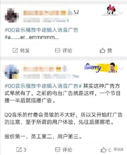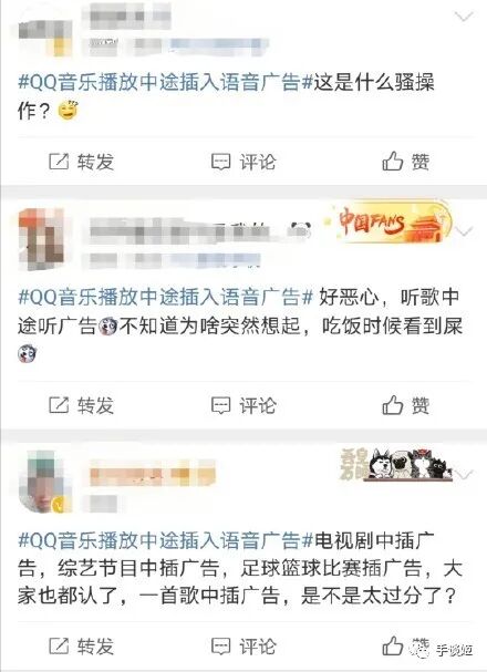打开微博搜索QQ音乐+广告的关键词,可以看到不少“被选中的人”疯狂吐槽。