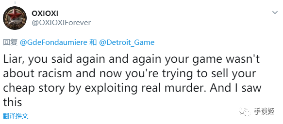 姬翻:任何形式的种族歧视都是可耻且愚蠢的,人们随时随地在与这个问题抗争着。黑人的命也是命,不论肤色、种族、信仰、性别、性取向,人们都应该生而平等。《底特律:变人》就是这样的游戏。