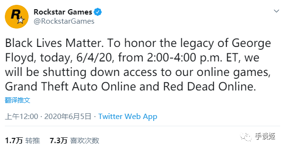 游戏界为佛洛伊德事件发文声援,引来了各路玩家的点赞。