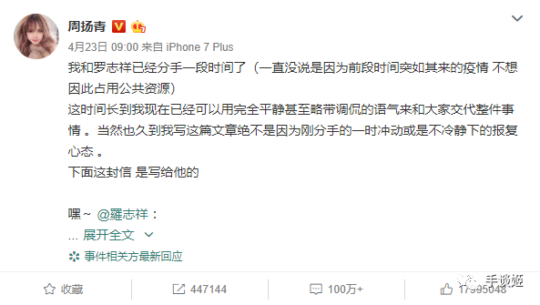 罗志祥女友(现在是前女友)周扬青的一条长微博直接点爆了互联网,让昔日的“亚洲舞王(别人封的)”一夜之间沦为了人人喊打的超级渣男。