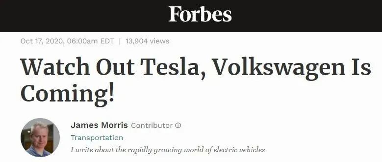 可以说,宣战特斯拉,大众把自己的家底都押上了,难怪美国《福布斯》杂志喊话马斯克:特斯拉当心,大众来了!