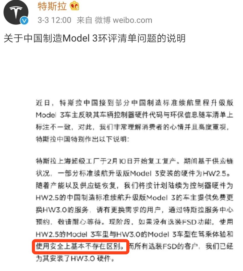 国内外玩双标不是一次两次,自动驾驶芯片HW3.0被减配为HW2.5,被发现还没有悔意,在工信部介入后终于答应升级更换,居然还睁眼说瞎话两者不存在区别。