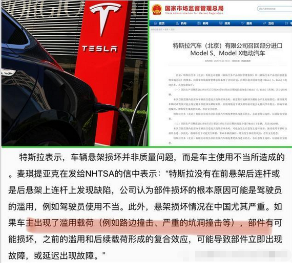 远的不说,今年10月底,因车辆悬架问题,特斯拉被数次举报投诉,引发国家市监总局调查并发布召回通知,特斯拉却在给美国管理部门的说明中,还狡辩没有问题,是中国车主不会开车。