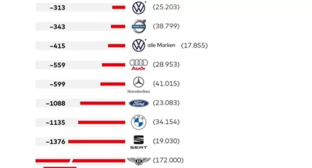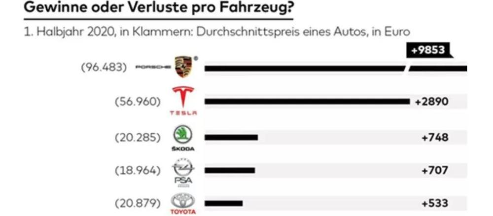 另一边,特斯拉视为对手的传统燃油车巨头,一个个过起了苦日子,在中国大杀四方的大众,卖一辆车居然要倒贴313欧元(约人民币2488)。奔驰卖一辆亏599欧元(约人民币4760),宝马已经亏上千欧了。