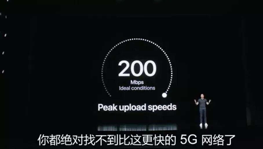 演示自家的5G运行速度时,下载速度达到惊人的4G,上传速度也达到了200M,苹果自己都禁不住自夸:你绝对找不到比这更快的5G网络了。