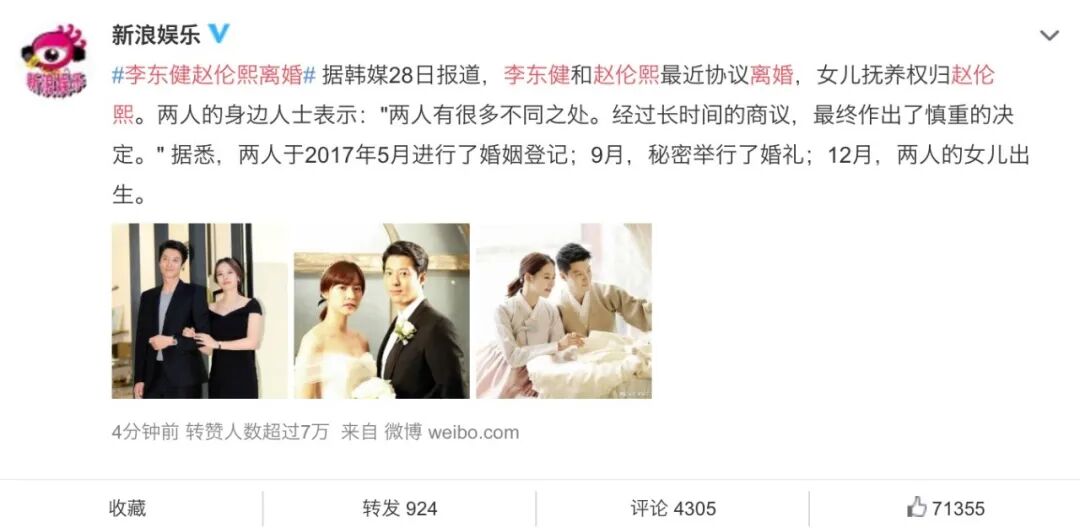 宋慧乔方面之后回应离婚消息,称“本公司旗下演员宋慧乔与丈夫经过慎重的考虑,决定离婚。