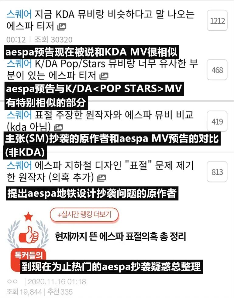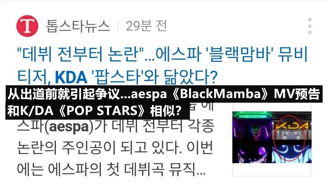 11月6日aespa出道曲《Black Mamba》MV预告正式公开,预告公开不久便被指出MV有抄袭嫌疑,相关内容占据了韩网社区的热门。