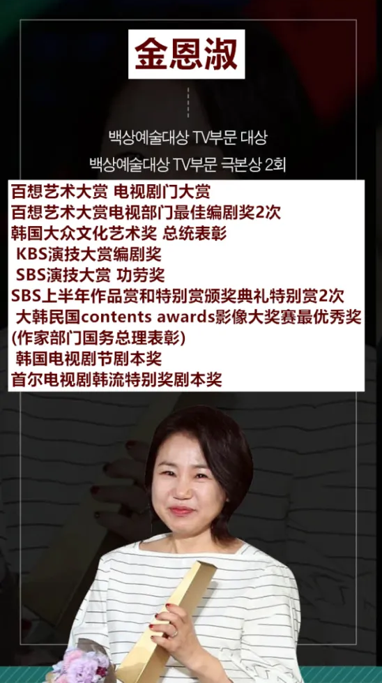 说到韩国的编剧,大家肯定都会想起金恩淑、朴智恩、洪氏姐妹等知名编剧。其中金恩淑的作品都以浪漫的爱情故事为主,她笔下的主人公大多都是灰姑娘与白马王子,例如《 秘密花园》《 继承者们》《 鬼怪》《The King:永远的君主》等电视剧都完美地体现了她的作品立意,因此金恩淑的浪漫爱情剧还被称为“浪漫爱情剧的教科书”。